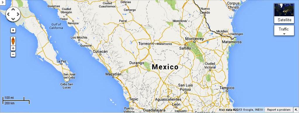 Elimina el panel de búsqueda y centra la ciudad de Torreón en el área de visualización/navegación. Por ahora seleccionaremos visualizar el mapa de divisiones políticas y no la imagen satelital.